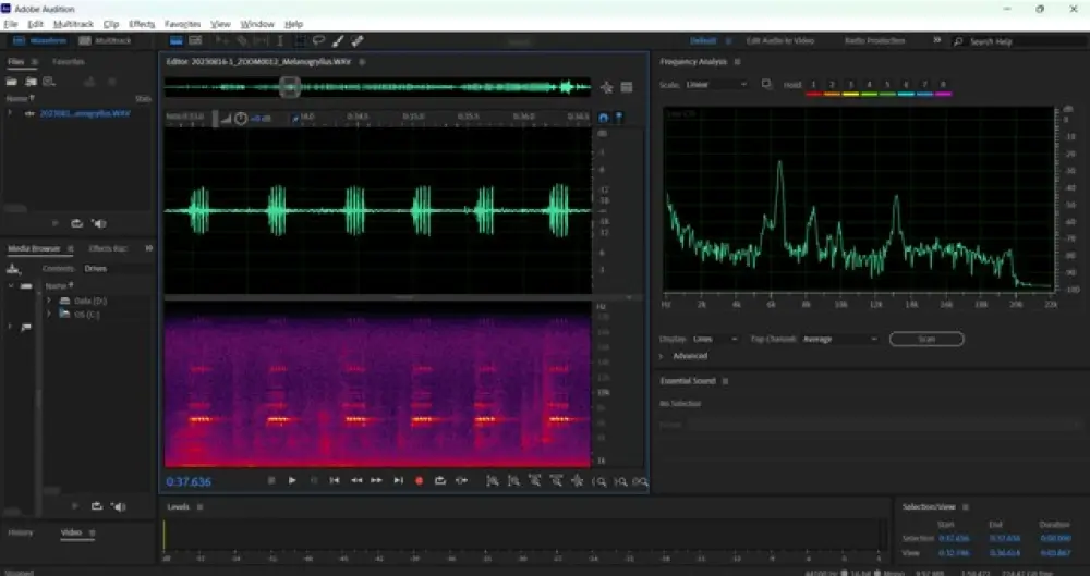 聲音是自然界中重要的溝通訊號。我們提供聲音錄製、頻譜分析、自動辨識與長期監測系統建置等服務,用以研究昆蟲、鳥類、兩棲類等生物的行為與族群動態。此技術可協助建立物種監測資料庫,應用於研究與保育管理。